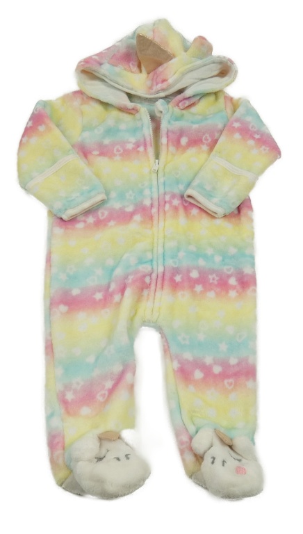 Barevná duhová chlupatá kombinéza - s hviezdami a kapucí - jednorožec
