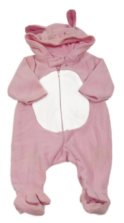 Ružovo-biela fleecová kombinéza s kapucňou s uškami Smily