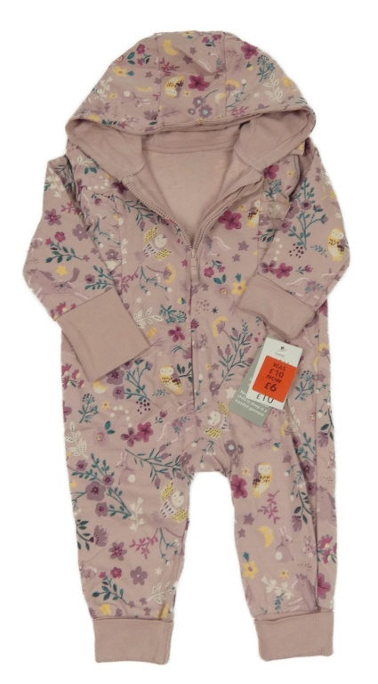 Nové - Staroružová kvetovaná tepláková kombinéza so sovami a kapucňou George