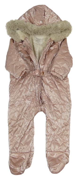 Svetloružová šušťáková prešívaná zimná kombinéza s kapucňou F&F