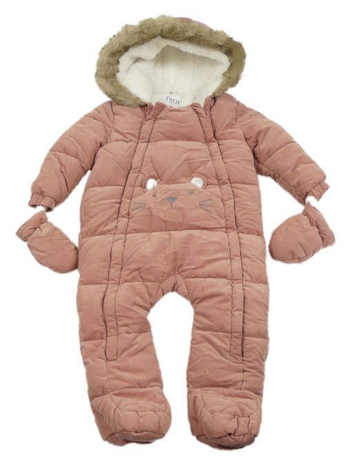 Ružová menšestrová zimná kombinéza s ňufáčikom a kapucí + rukavice F&F