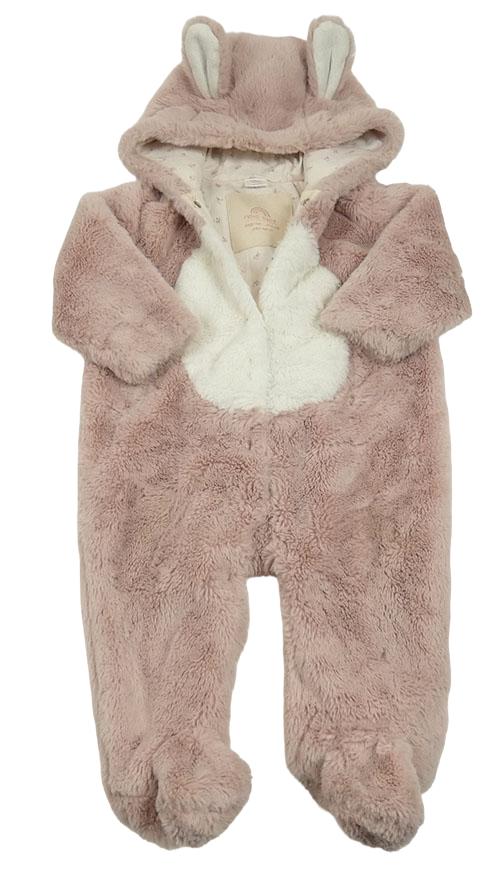 Starorůžovo-biela kožušinová podšitá kombinéza s kapucňou s uškami Next