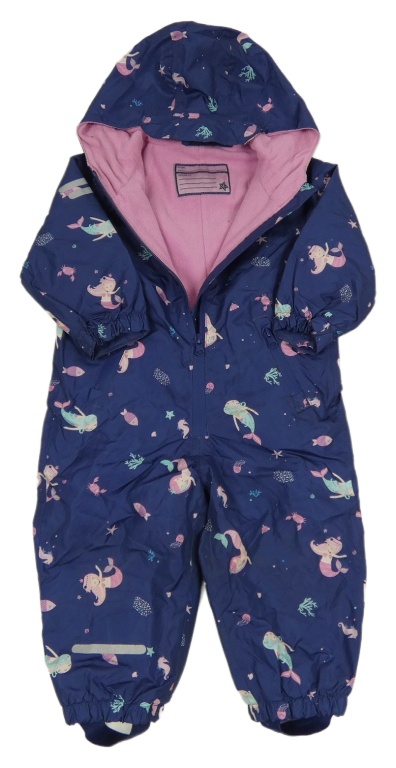Tmavomodrá šušťáková jesenná kombinéza s mořskými pannami a kapucňou impidimpi