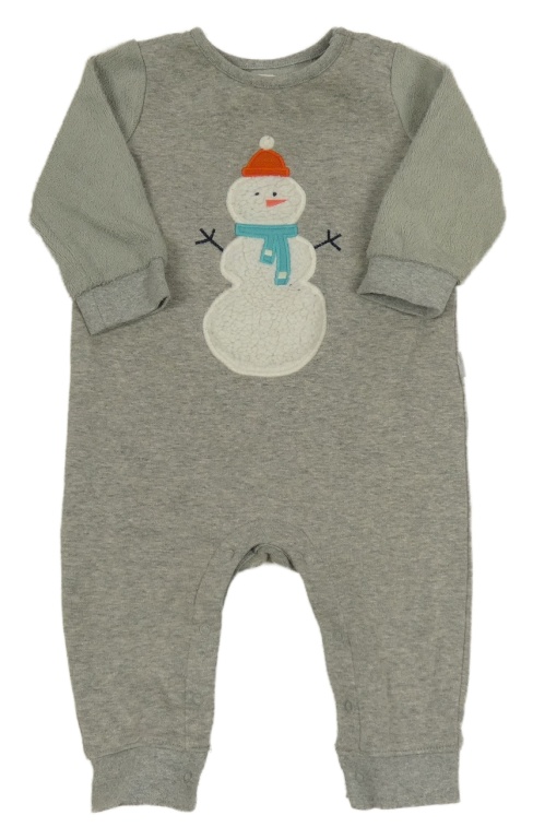Sivá melírovaná teplákovo/fleecová silnější kombinéza so sněhuláčkem GAP