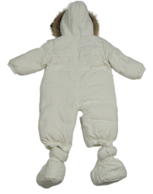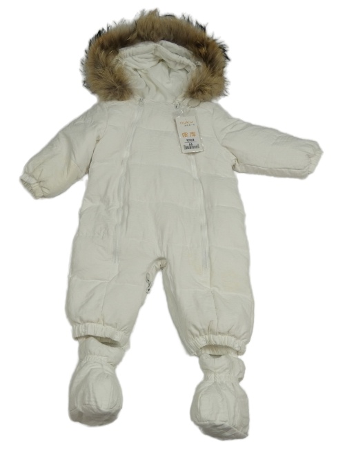 • Nová - biela prešívaná šušťáková zimná kombinéza s kapucňou s kožušinovou + cápačky