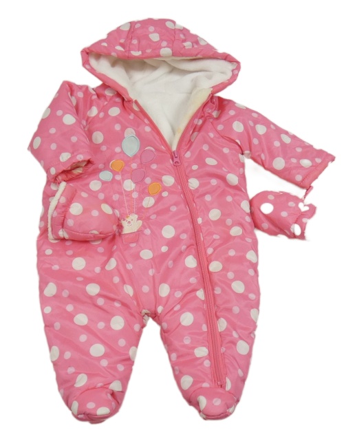 • Ružová bodkovaná á šušťáková zimná kombinéza s medvedíkom a kapucí - rukavice St. Bernard