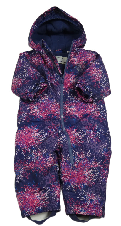 Tmavomodro-ružovo-fialová vzorovaná šušťáková zimná kombinéza s kapucňou Lupilu
