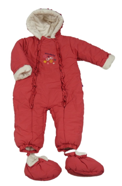 Malinová šušťáková zimná kombinéza s kapucí + topánky