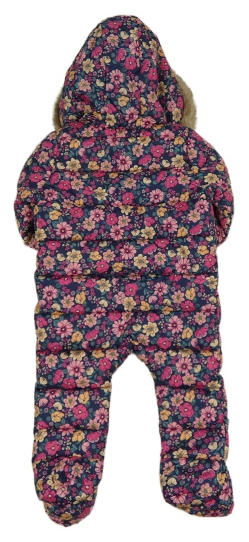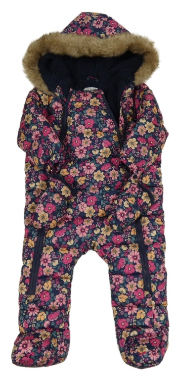 Tmavomodrá šušťáková zimná kombinéza s kvietkami F&F