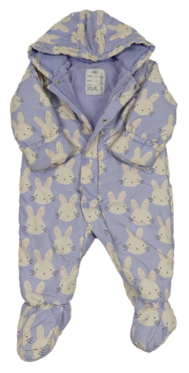 Fialová šušťáková zimná kombinéza so zajačikmi a kapucňou M&S