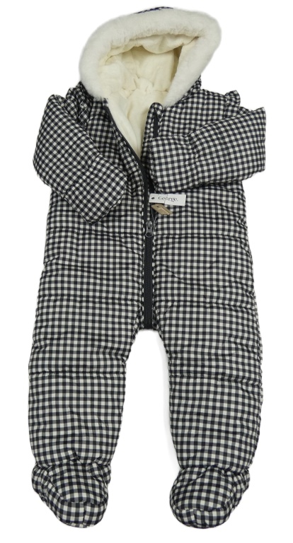 • -Nové Čierno-biela kockovaná šušťáková zimná kombinéza s kapucňou George