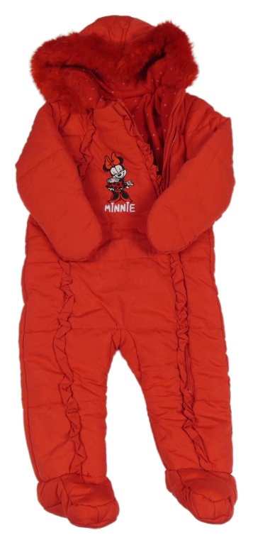 Červená šušťáková zimná kombinéza s Minnií a kapucňou George