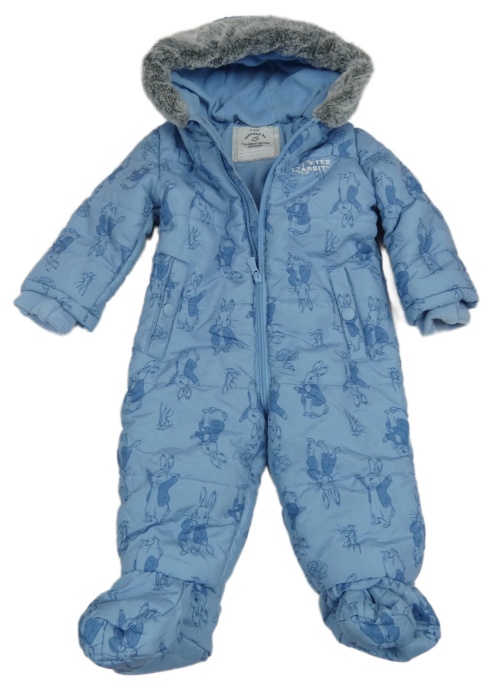 Modrá šušťáková zimná kombinéza s králikmi a kapucňou s kožešinou George