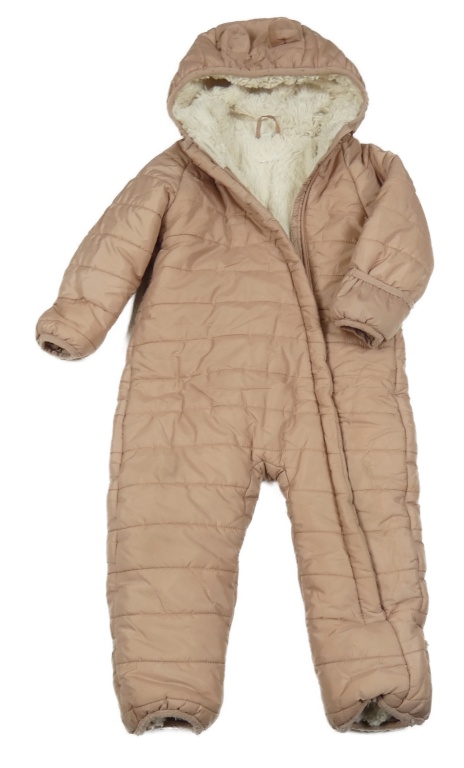 Pudrová šušťáková prešívaná zimná kombinéza s kapucňou
