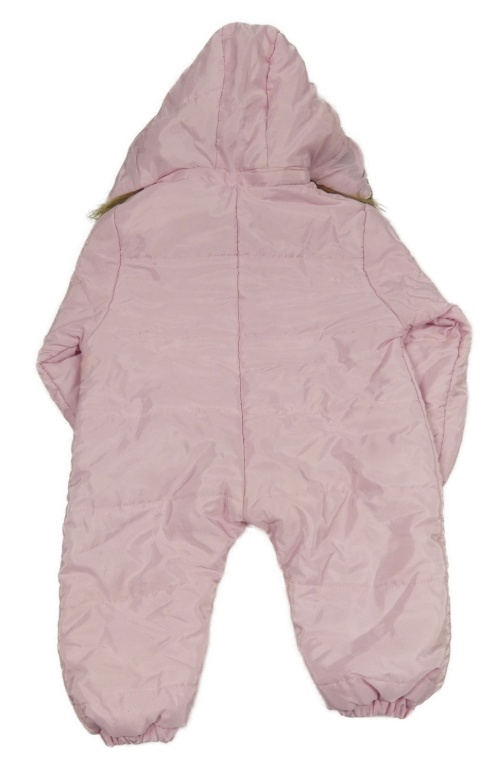 Svetloružová šušťáková šušťáková zimná kombinéza s kapucňou s kožešinou