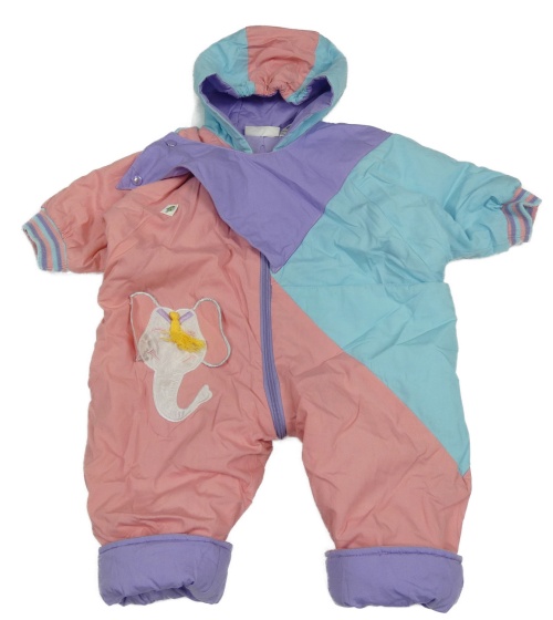 Světlemodro-ružovo-fialová šušťáková zimná kombinéza s kapucňou
