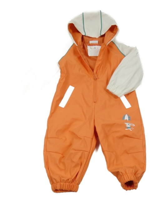 Oranžovo-biela nepromokavá podšitá kombinéza s myškou a kapucňou Smily