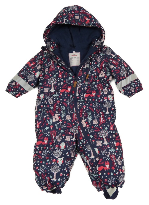 Tmavomodrá šušťáková zimná kombinéza so zvířaty a kapucňou Topomini