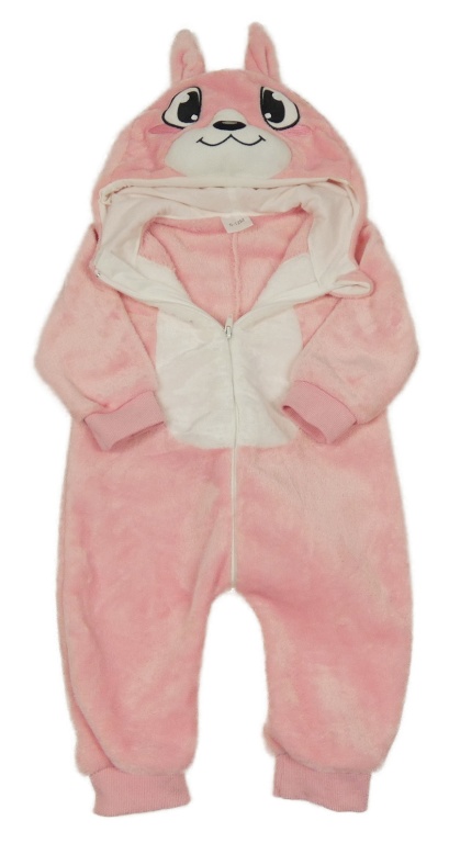 Ružovo-biela plyšová kombinéza s kapucí - zajačik