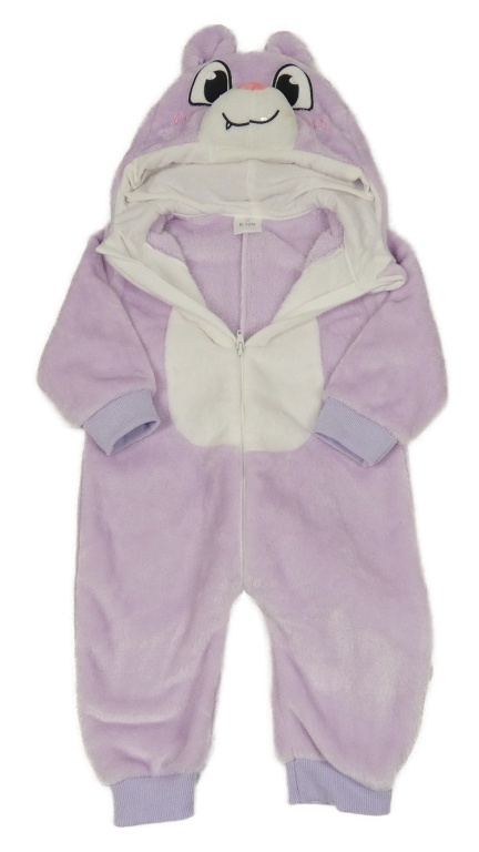 Levandulovo-biela plyšová kombinéza s kapucí - zajačik