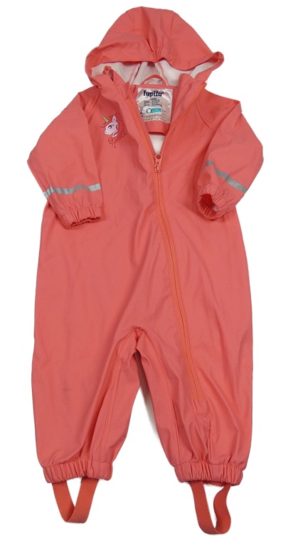 Korálová nepromokavá kombinéza s jednorožcom a kapucňou lupilu