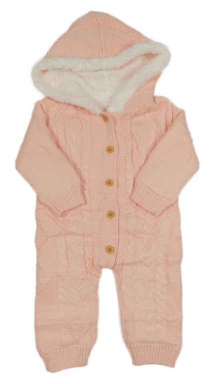 Lososová pletená zateplená kombinéza so vzorom a kapucňou