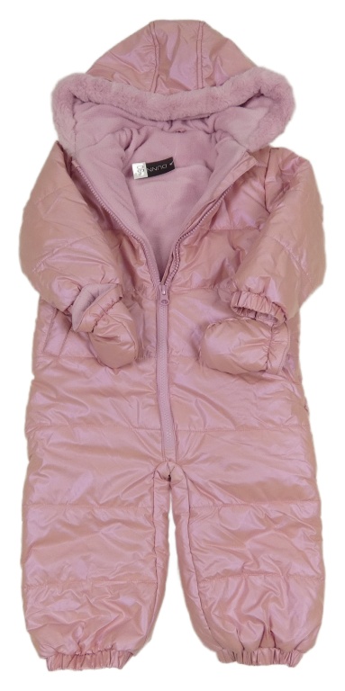 Nové - svetloružová šušťáková prešívaná zimná bunda s kapucí + rukavice Dunnes