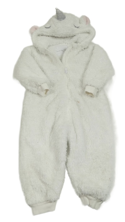 Biela chlpatá trblietavá kombinéza s kapucí - jednorožec Next