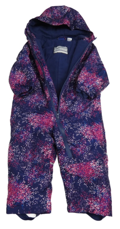Tmavomodro-fialovo-ružová vzorovaná šušťáková zimná kombinéza s kapucňou Lupilu