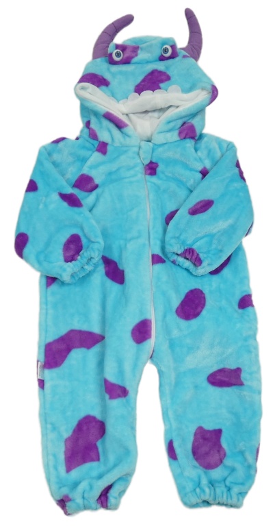 • Azurovo-fialová chlpatá kombinéza s kapucňou s rohy