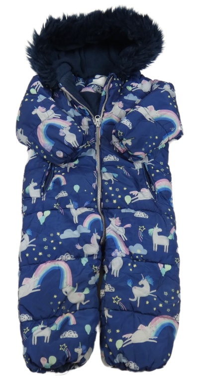 Tmavomodrá šušťáková zimná kombinéza s jednorožcami a kapucňou Next