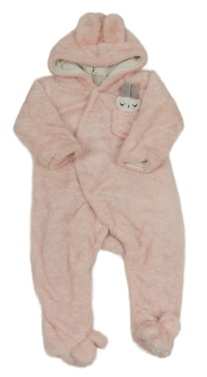 Svetloružová plyšová zateplená kombinéza s králikom a kapucňou