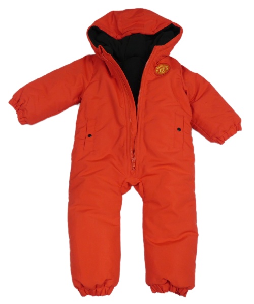 • Červená šušťáková zimná kombinéza s Manchester United s kapucňou