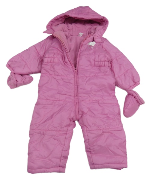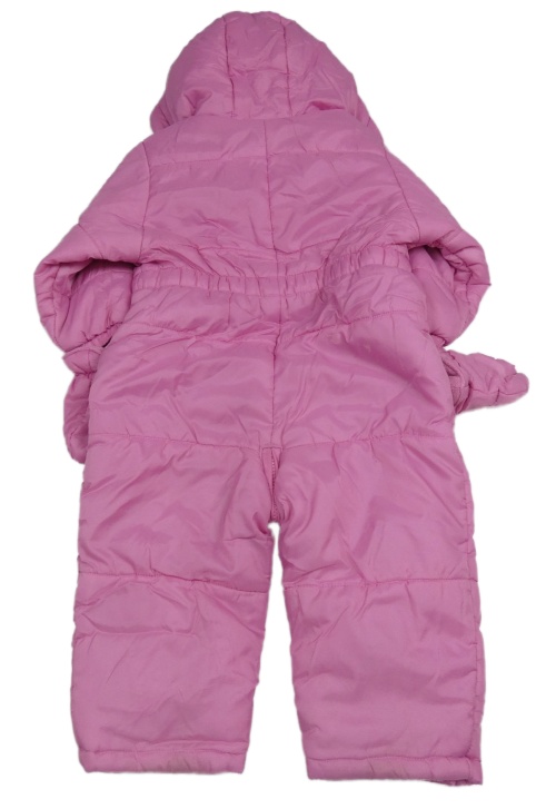Ružová prešívaná šušťáková zimná kombinéza s vtáčikom a kapucí + rukavice C&A