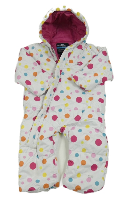 Bielo-farebná bodkovaná á šušťáková zimná funkčná kombinéza s kapucňou Trespass