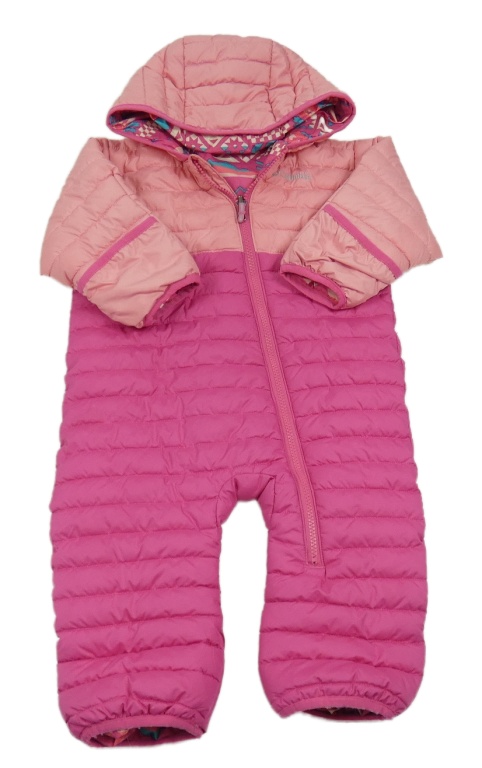 Ružová vzorovaná šušťáková obojstranná zimná funkčná kombinéza s kapucňou Columbia