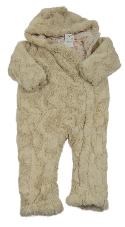 -Nové Béžová kožušinová zateplená kombinéza s kapucňou F&F