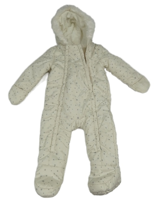 Biela šušťáková zimná kombinéza s hviezdami a kapucňou s kožešinou Primark