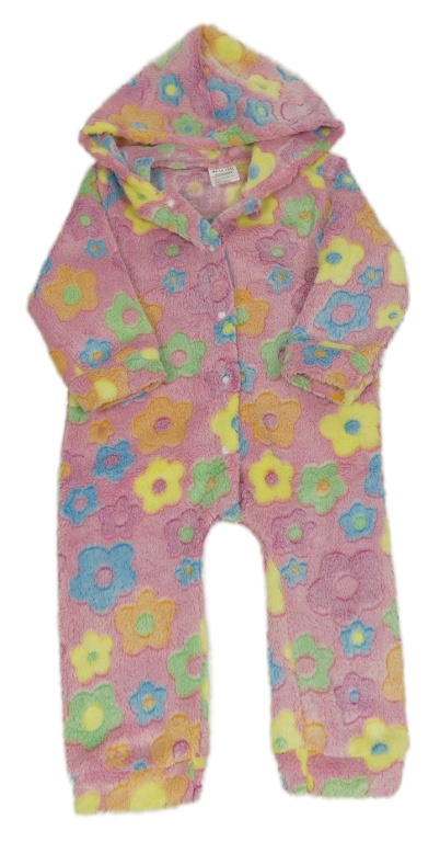 Ružová kvetovaná chlpatá kombinéza s kapucňou