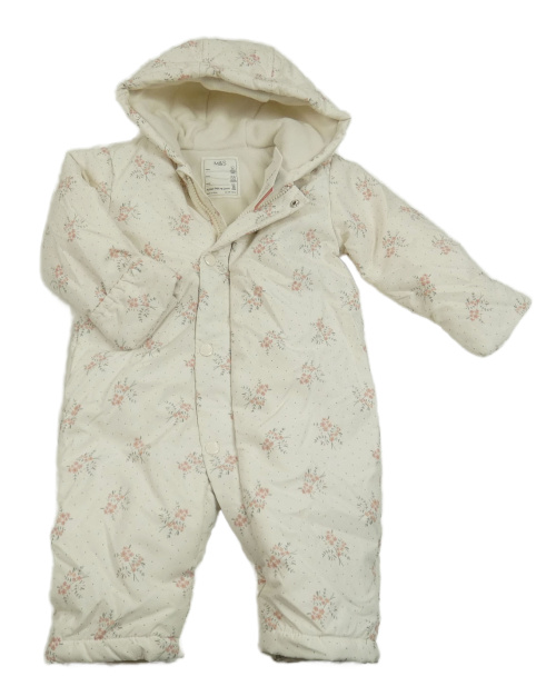 Nové - smotanová kvetovaná šušťáková zimná kombinéza s kapucňou M&S