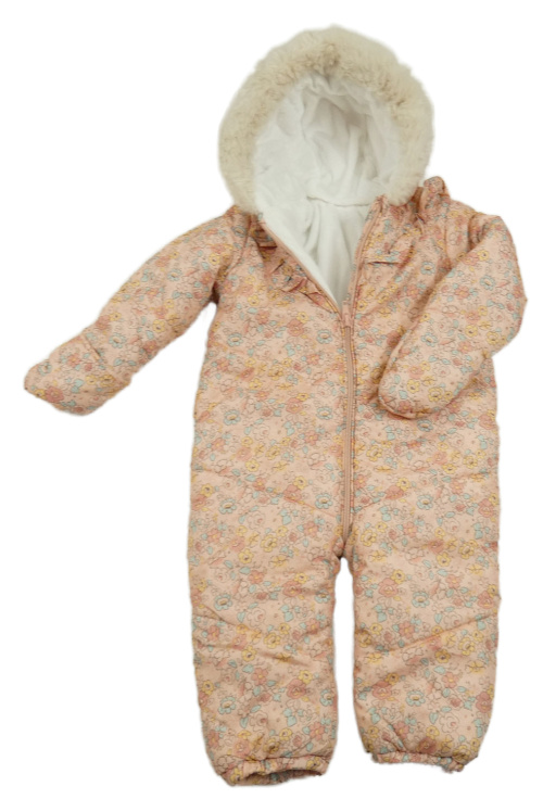 Svetloružová kvetovaná šušťáková zimná kombinéza s kapucňou George