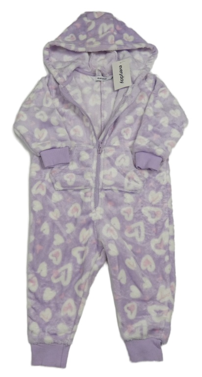 Nové - svetlofialová chlpatá kombinéza so srdiečkami a kapucňou Everyday