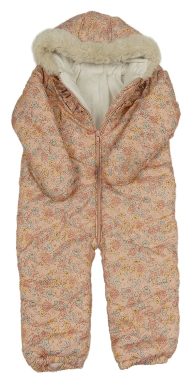 Ružová kvetovaná šušťáková zimná kombinéza s volánikmi a kapucňou George