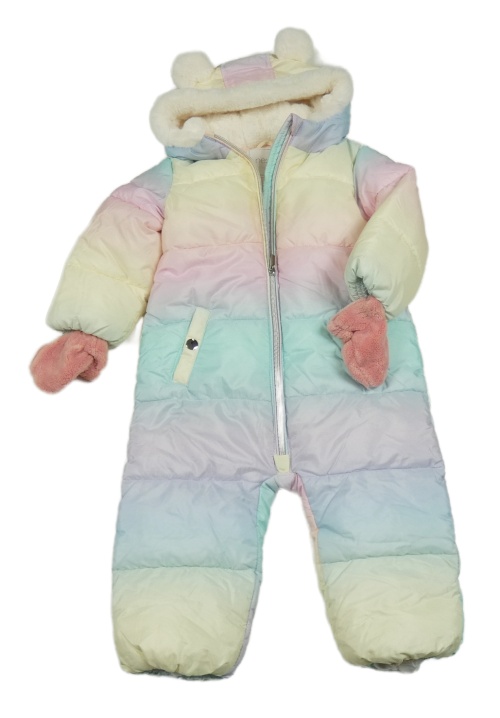 Farebná pastelová šušťáková zimná kombinéza s kapucňou s kožešinou + rukavice Next