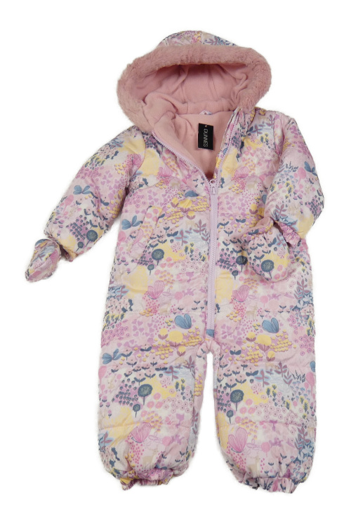 • Nové - Ružová šušťáková kvetovaná vzorovaná zimná kombinéza so zvieratkami a kapucí + rukavice Dunnes Stores