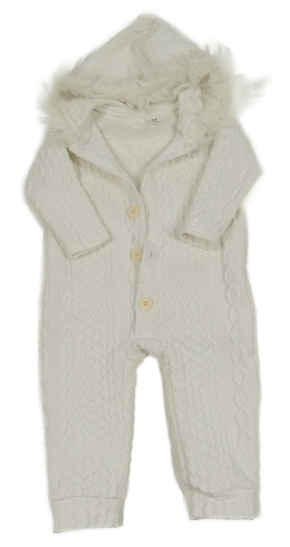 Biela 3D vzorovaná kombinéza s kožešinou a kapucňou Shein