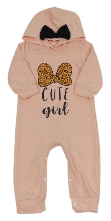 Ružová tepláková kombinéza s nápisom a mašlou a kapucňou