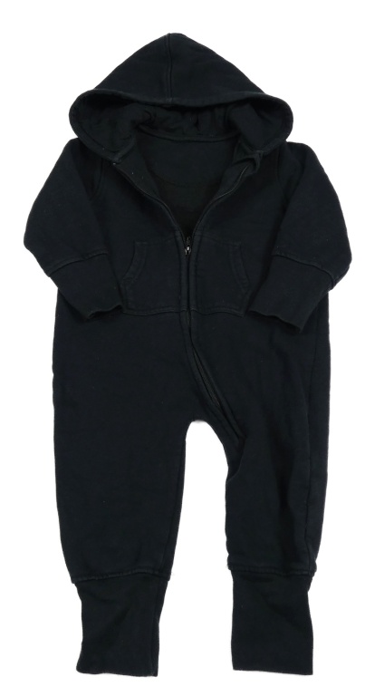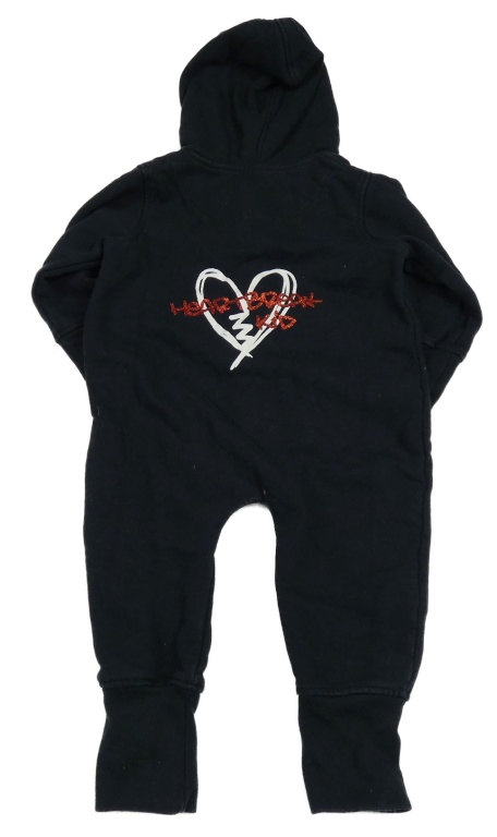 Čierna tepláková kombinéza s nápismi a srdiečkom a kapucňou