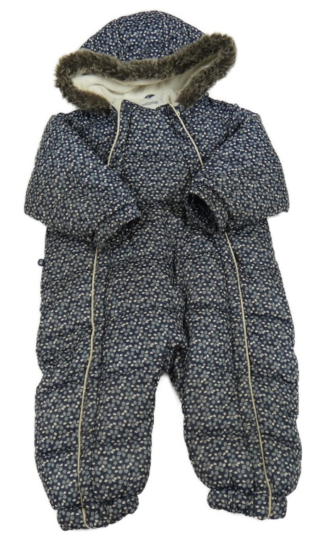 • Tmavomodrá vzorovaná prešívaná šušťáková zimná kombinéza s kapucňou s kožešinou OBaïBi