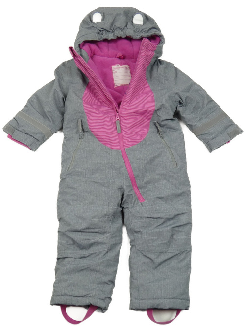 Sivo-ružová šušťáková zimná kombinéza s kapucňou s uškami Topolino